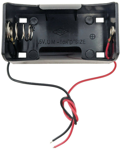 Single 'D' Cell Battery Holder with Wire Leads, Plastic Case (2.71" x 1.45" x 1.22")