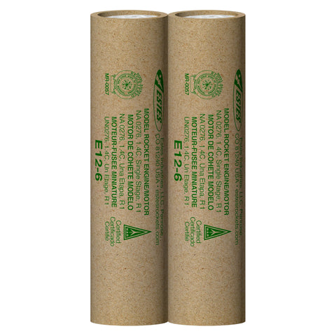 The Estes E12-6 is a high-thrust engine with a 6-second delay, designed for heavier rockets up to 14 oz. It offers powerful launches and smooth recovery deployment for larger models.