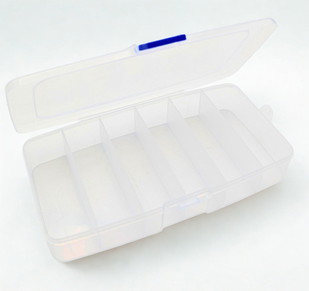 Plastic Box, 6 Fixed Compartments, 7.5 x 4 x 1.25"