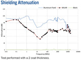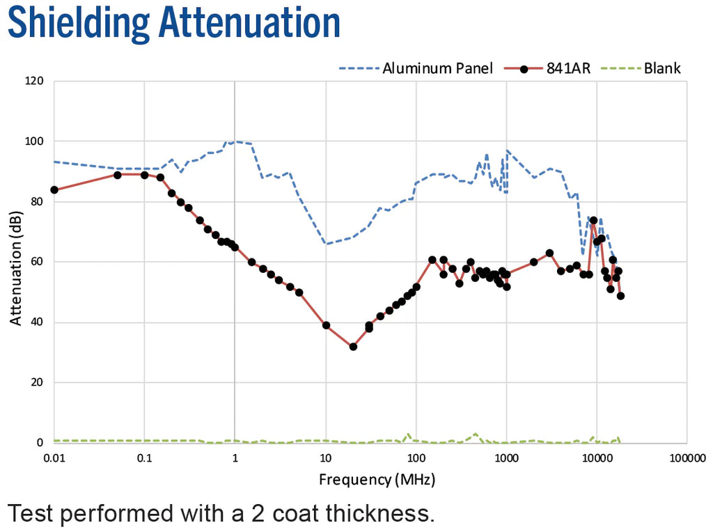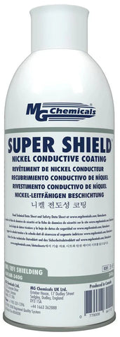 Shielding paint for plastic enclosures in convenient aerosol spray packaging. It is a solvent based acrylic lacquer, pigmented with a highly conductive nickel flake. Unlike diamagnetic fillers such as carbon, copper, or silver that only shield the electric component of electromagnetic waves, nickel is ferromagnetic and shields the magnetic component as well. It has a quick dry time, with no heat cure necessary. The cured coating is smooth, hard, and abrasion resistant. It adheres strongly to most injection molded plastics, such as ABS, PVC, nylon and polycarbonate. It also provides strong corrosion resistance and is suitable for use in marine environments.