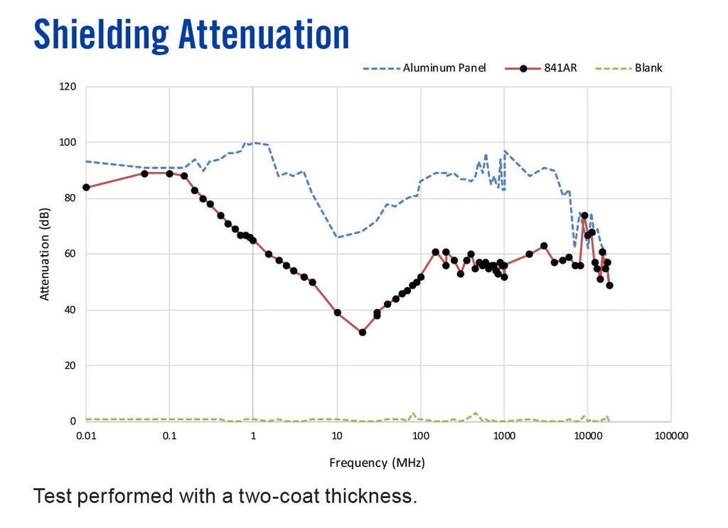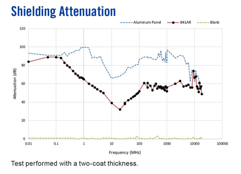 841AR provides broad spectrum electromagnetic shielding. A 1 or 2-coat application to the interior of the electronics enclosure will solve the EMC issues of most devices. It may also be used for creating well grounded surfaces.