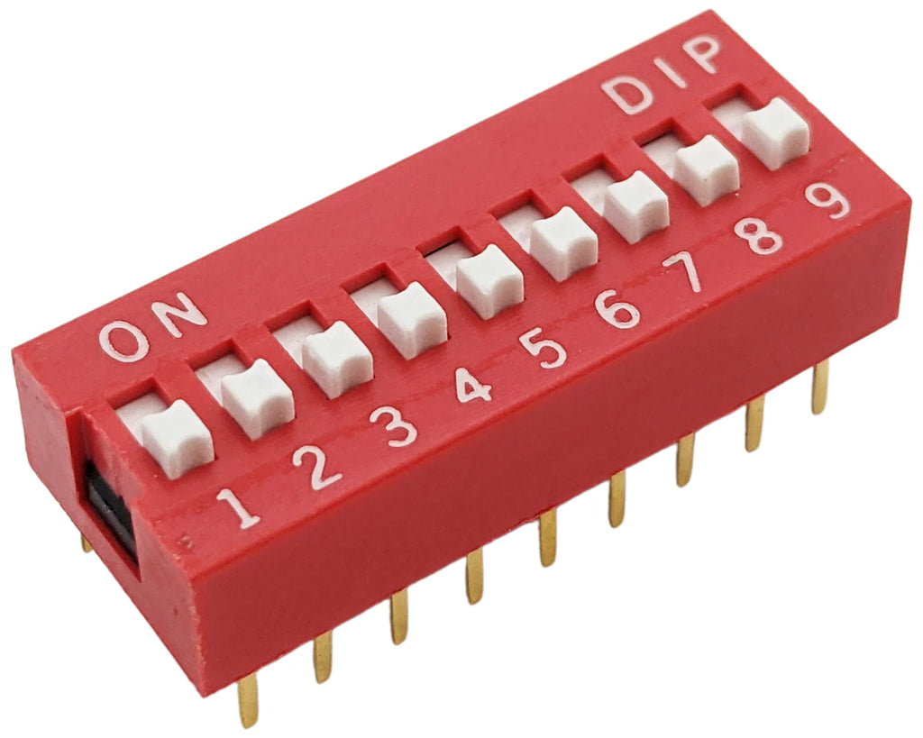 DIP Switch with 9 Switches, 18-Pin, SPST, Red Color, 24.3mm x 9.9mm x 5.3mm