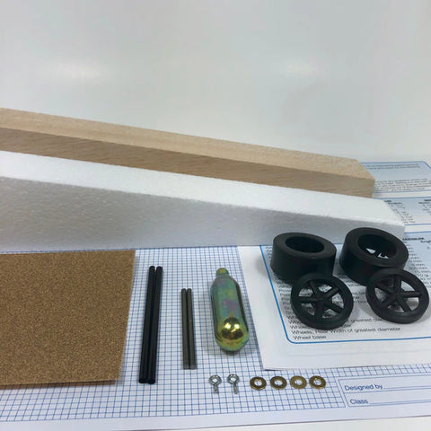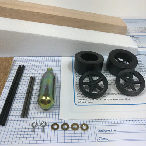 • Carbon-dioxide (Co2) dragster kit provides students in grades 6-12 a hands-on activity to design, build, and race a model Co2 dragster that demonstrates the scientific concepts of aerodynamics, motion, drag, and friction.