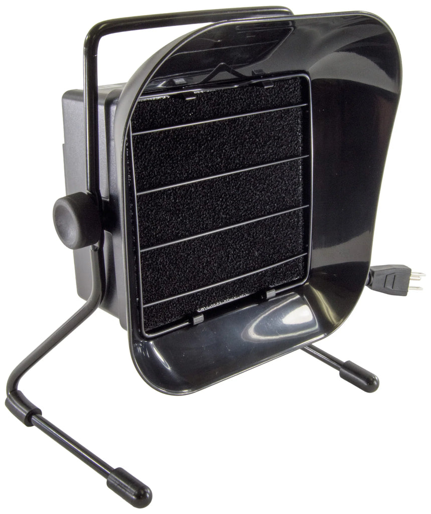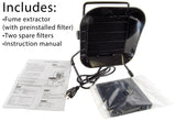 High quality tabletop soldering fume / smoke extractor. Works great and removes noxious fumes. It has an easy to replace filter and it's ESD safe. It is angle adjustable — tilt as needed to maximize effectiveness. One carbon filter is preinstalled and two replacements are also included in the box.