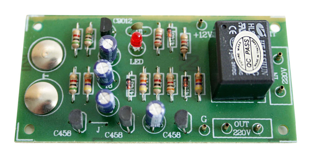 The GSK-10 is a kit which incorporates a touch switch and a touch plate in the same package. The touch switch will activate when two leads are shorted together by the touch of a finger. The touch plate will activate merely by touching the plate. AC or DC voltage must be applied to the kit for full operation. This kit may be assembled without soldering on any Global Specialties trainer or Proto-Board® (not included), or by soldering to the included PCB. Parts and assembly instructions included.