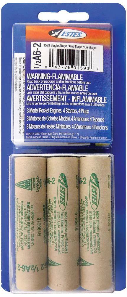 Estes 1/2A6-2 Model Rocket Engine Pack - Includes 3 Engines with Starters & Plugs (1593)