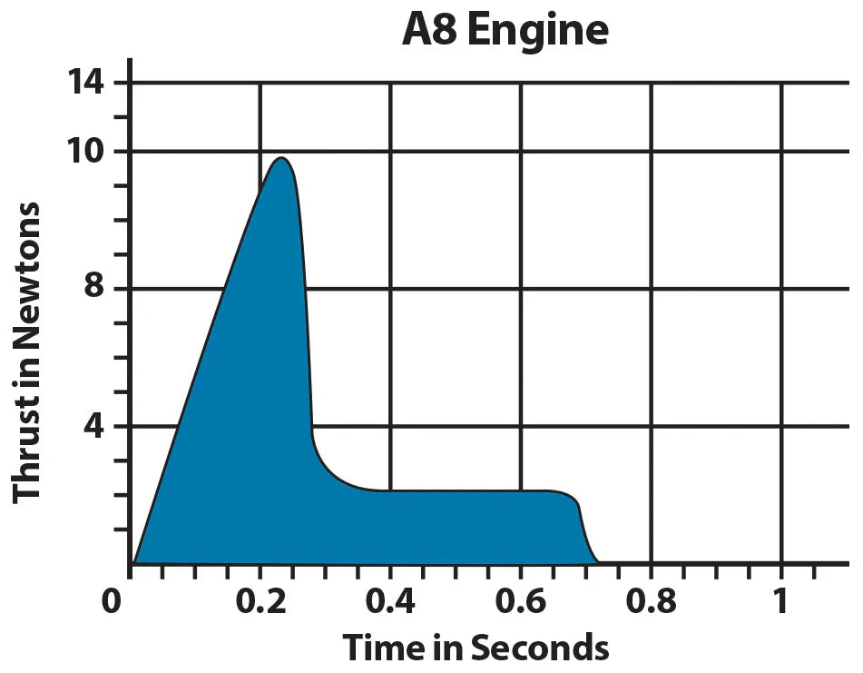 The A8-3 is a single stage engine designed for model rocket flights weighing less than 3 ounces, including the engine. This engine is ideal for smaller fields, or to be able to see the entire flight profile of your rocket.