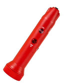 The Fox HotWire is powered by a 9 volt battery for Low Voltage tracing or it can be powered by the High Voltage line it is toning. It can generate multiple tones (Pulse or Warble), provides a visual and audible continuity test, and integrates our own True Trace and TripLatch tests while providing overload protection up to 250 VAC. The Hound HotWire is a battery operated handheld lightweight Probe; containing both a thumbwheel Sensitivity control and Signal Strength indicator LED. It has a built-in LED headlights to illuminate dark areas and reduce fluorescent light noise, a bandpass filter to suppress unwanted frequencies, an earphone jack for noisy or quiet work areas, and an easy access battery cover. The HotWire can also trace other powered or unpowered common wires including telephone and cable TV wires, LAN cables, security system wires, and many others. The HotWire Fox also includes a very useful feature called TrueTrace. The HotWire‘s RF signal can be sensed through both building materials and most metal conduit. The HotWire can even trace shallow (up to 6" deep) underground wires, like those commonly used for ‘Invisible Fences’, cable television, telephone, or low voltage landscape lighting. Complete with test leads (24" and 60"), flat blades, pointed probes, alligator clips, hard carrying case and batteries (2-9V).