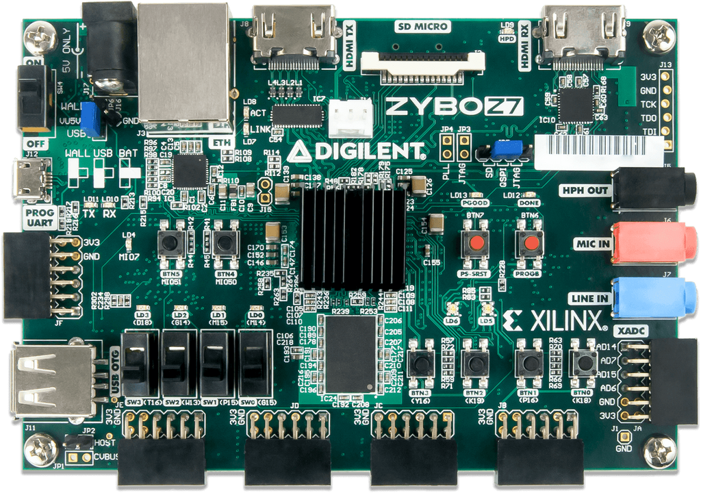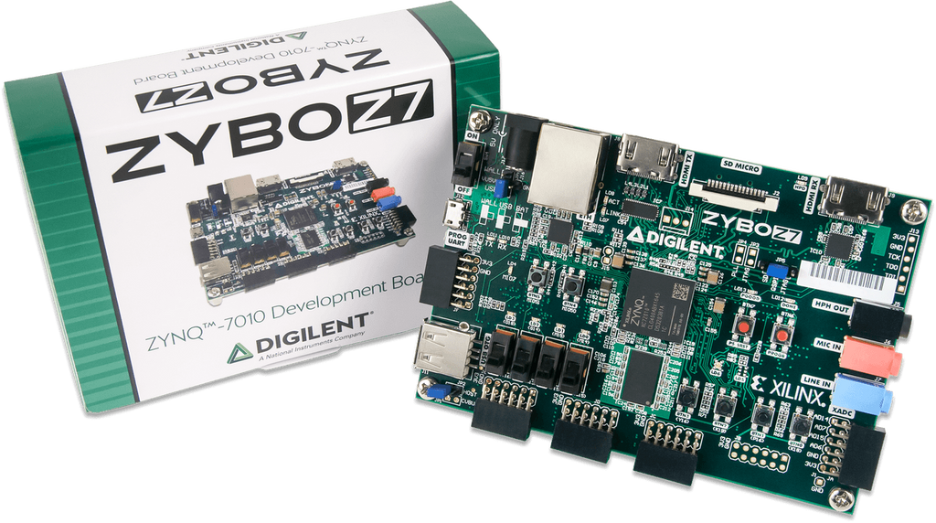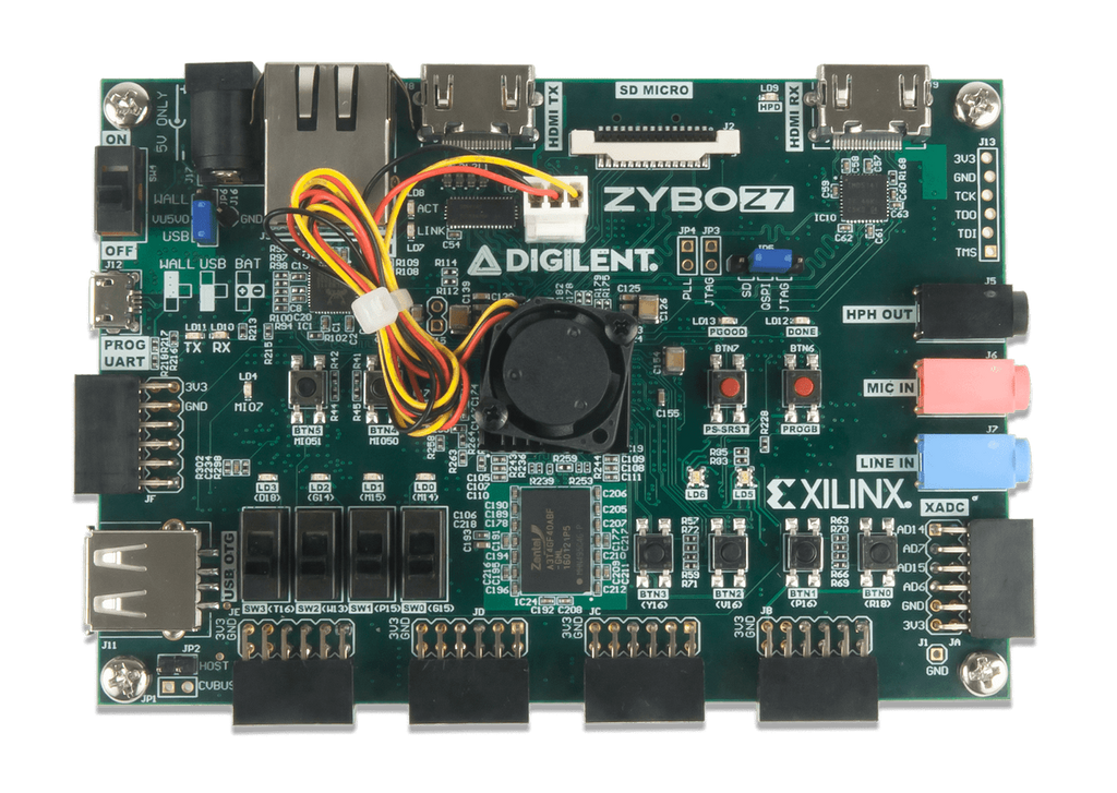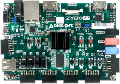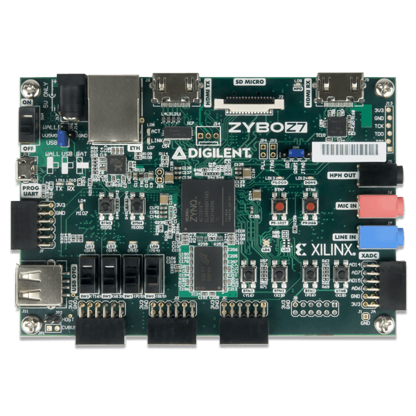 A rich set of multimedia and connectivity peripherals make the Zybo Z7 a formidable single-board computer. A MIPI CSI-2 compatible Pcam connector, HDMI input, HDMI output, and high DDR3L bandwidth establish the Zybo Z7 as an affordable, yet capable, solution for high-end embedded vision applications. Attaching additional hardware is made easy by the Zybo Z7's Pmod connectors, allowing access to Digilent's catalog of over 70 Pmod peripheral boards, including motor controllers, sensors, displays, and more.
