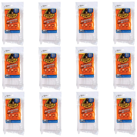 Gorilla 360 Count 4" Long x 0.27" Diameter Mini Hot Glue Sticks, Clear, 45 Second Extended Working Time