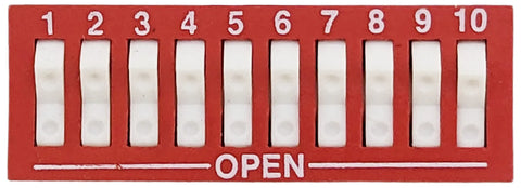 Rocker Style DIP Switch with 10 Switches, 20-Pin, SPST, Red Color, 27.4mm x 9.6mm x 7.9mm