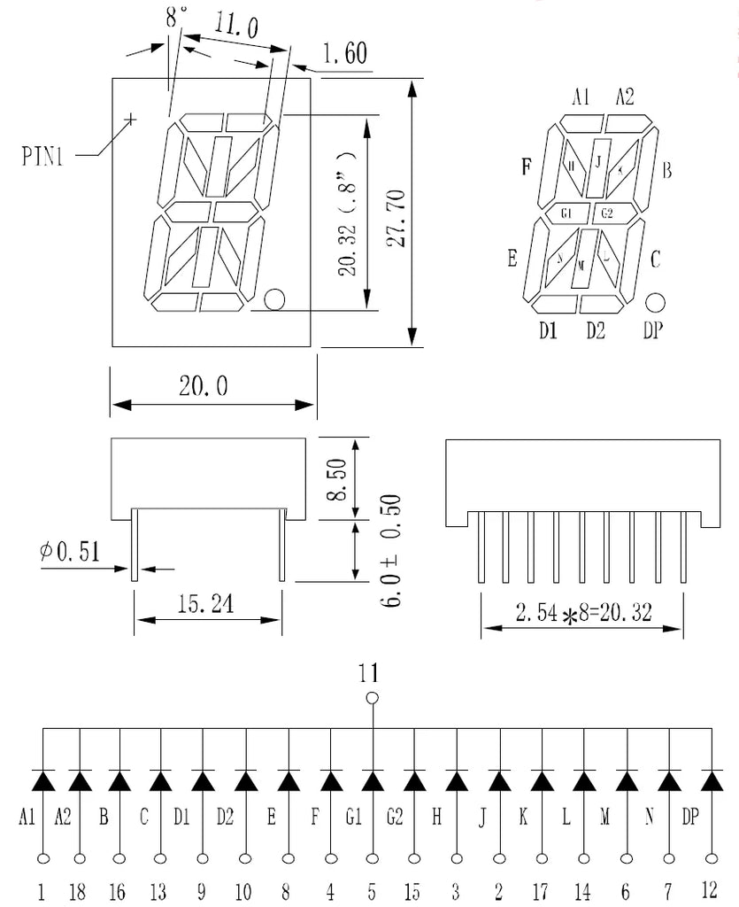 - 16 Segment Single Digit Alphanumeric Display, Red