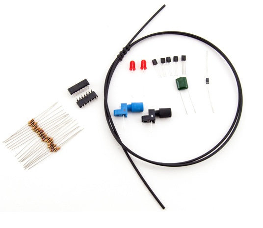 Great way to learn about Fiber Optic Transmission. Includes fiber optic components, cable, and lab manual with expirements that can be breadboarded.