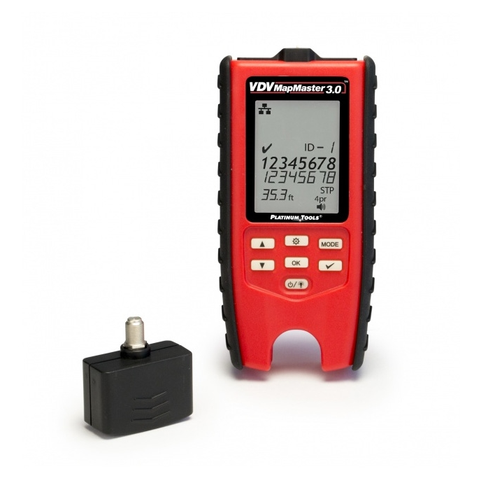 The VDV MapMaster™ 3.0 combines continuity testing, mapping, generating tones and length measurement functions into a single easy-to-use unit for installation, troubleshooting, and maintenance for telco, network, or coax cable. The back-lit display, glow-in-the dark keypad and a built-in flashlight helps you to work in the dark. Whether your jobs are commercial or residential, the versatility and added features of the VDV MapMaster 3.0 makes it a best value cable verifier for the professional installer!