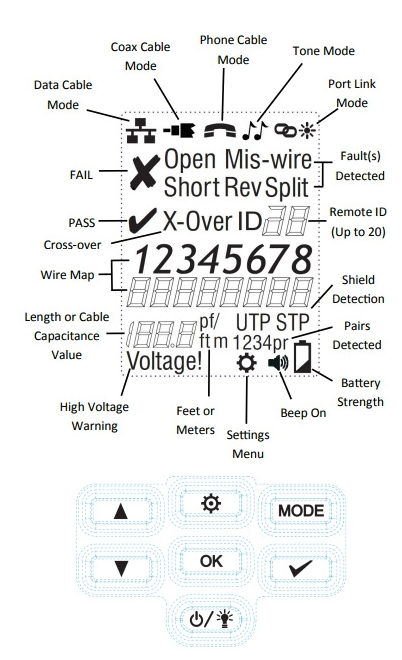 • Verifies continuity for multiple cable types (LAN, Phone and Video)