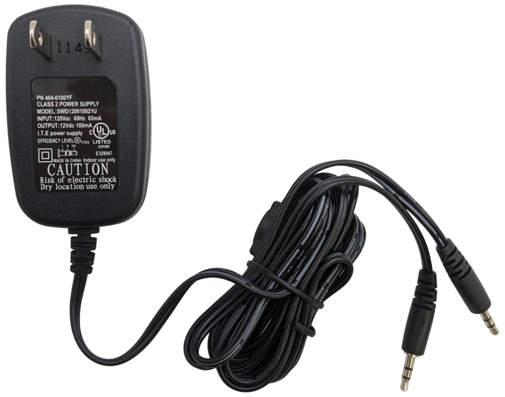 12VDC 100mA Wall Adapter with Two 2.5mm Male Plugs (404-0100YF)