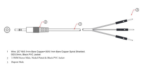 5 Pack 3.5mm Breakout Stereo Male Cable to 3x Dupont Male, 6 Feet Total Length