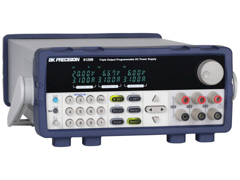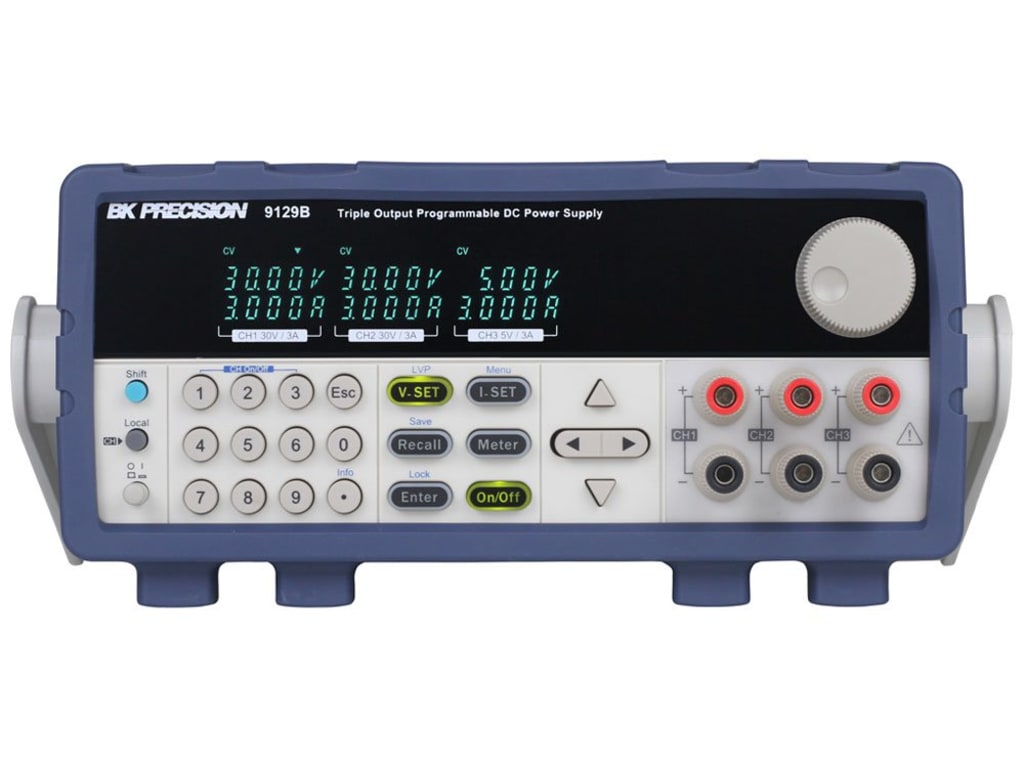 The 9129B is an economical triple output linear programmable DC power supply featuring isolated outputs that can be adjusted independently or combined in series or parallel to output higher voltage or current. Additionally, this supply can operate in tracking mode with user-configurable ratios between channels.