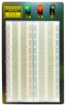 Solderless breadboard ideal for testing, prototyping and experimentation. The clear / see-thru contact points make it easier for you (or your students) to view inserted wires and component leads.