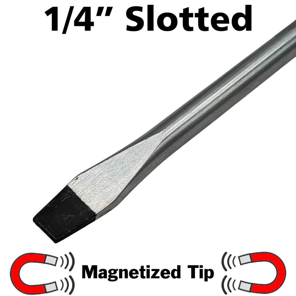 8" Slotted Screwdriver, 1/4" Magnetic Tip, 4" Shaft Length