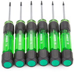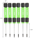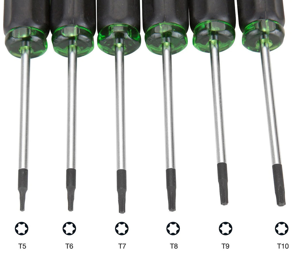 This precision Star screwdriver set includes a T5, T6, T7, T8, T9 and T10 precision screwdriver for electronics and intricate projects in hard-to-reach spots. The screwdrivers in this set feature magnetic tips and a swiveling end cap for easy one-handed use.