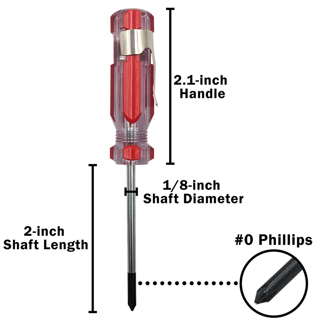 Mini Phillips #0 Pocket-Clip Screwdriver with Magnetized Tip, 4-inch Overall Length