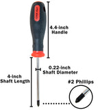#2 Phillips Screwdriver with 4" Shaft, Rubber Grip Handle, Magnetic Tip