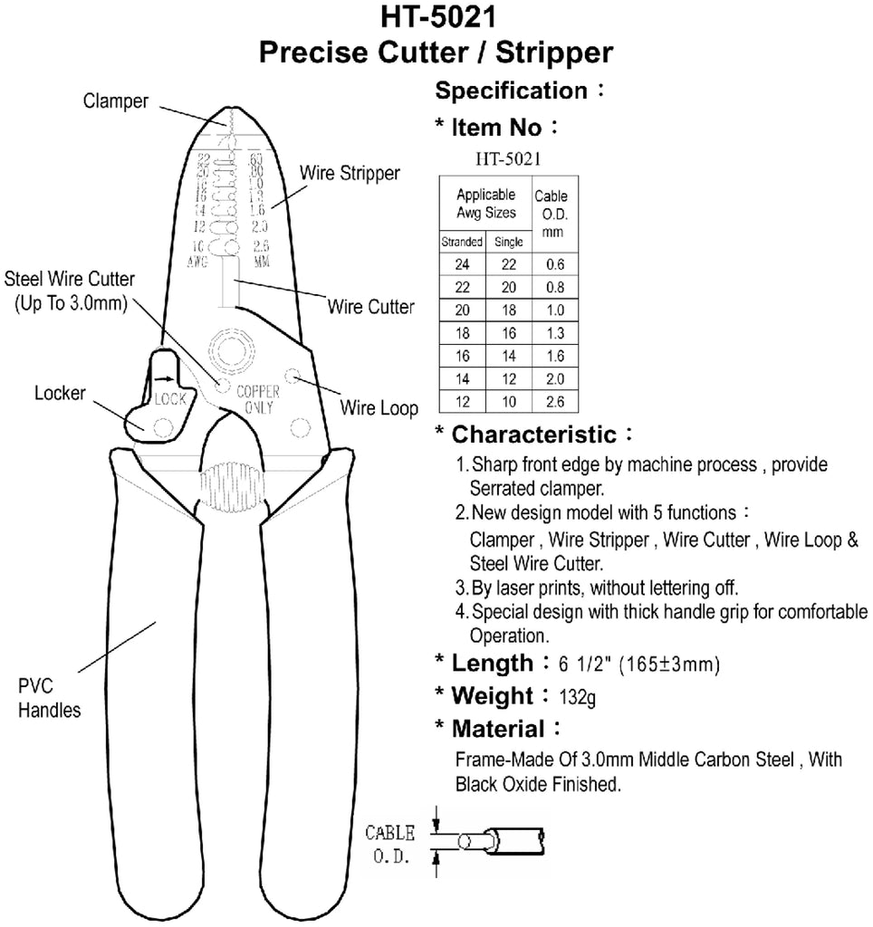 Multifunction Wire Stripper and Cutter for AWG 10 to 22