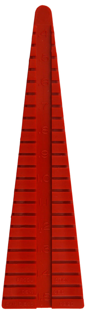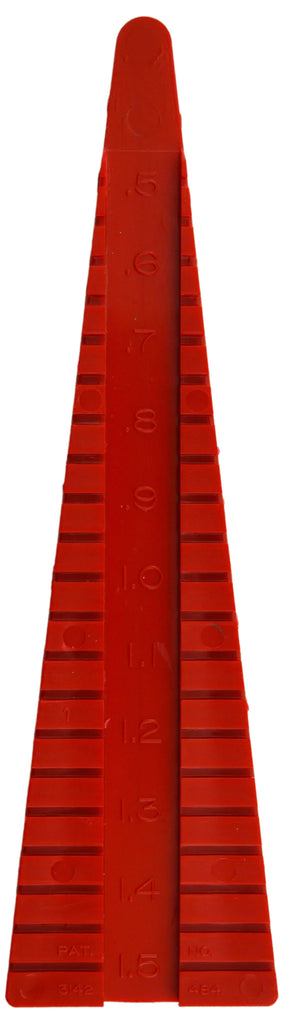 Double-sided lead bending gauge, accepts 1/4W and 1/2W components. Forms leads quickly and accurately. Graduated in .05" increments. Radiused edges eliminate scarring of leads.