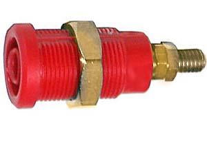 Banana Jack, insulated round head, tin plated brass contact. Red.