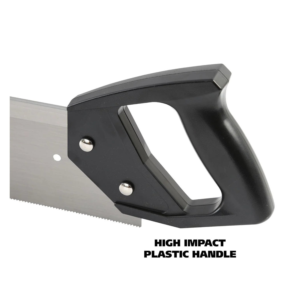 The GreatNeck 12 Inch Mitre Box with 14 Inch Back Saw is designed to cut soft and hard woods commonly used in molding and trim applications. The box has preset cuts for 45° and 90° angles, allowing for precisely beveled corner cuts. It features 12 PPI for smoother cutting.