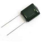 Metallized polyester film capacitor gives high stability and protects from humidity.