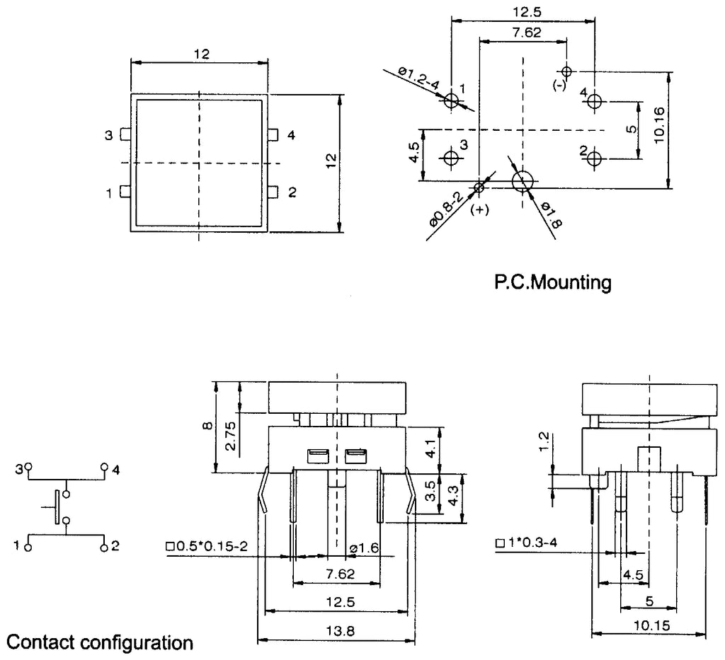 12mm PCB Push Button Switch with Illuminated Red LED, White Cap