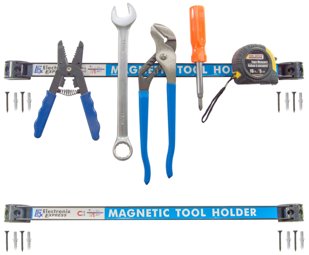 These magnetic racks are our favorite shop organizational tool. More convenient than drawer-storage or pegboard hooks, they help keep clutter off the workbench and essential tools visible for quick access. They work with any ferrous-metal tool or other object you want to keep at the ready. You'll be glad they come in pairs because they tend to fill-up with 'essential' tools fast! Mounting hardware included. Tools not included.