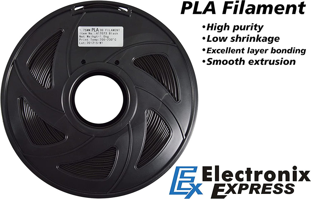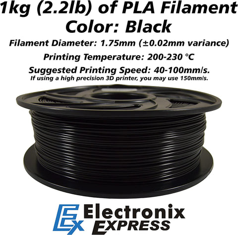 - 1kg (2.2 lb) Spool of Black Color PLA Filament, compatible with nearly every 3D printer