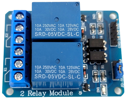 This is a 5V 2-Channel Relay interface board. It can be used to control various appliances and other equipment with large current. It can be controlled directly by Micro-controller (Raspberry Pi, Arduino, 8051, AVR, PIC, DSP, ARM, ARM, MSP430, TTL logic).