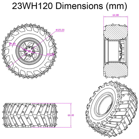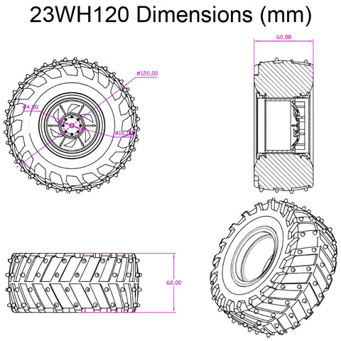 The wheel has a 120mm diameter and is 60mm wide