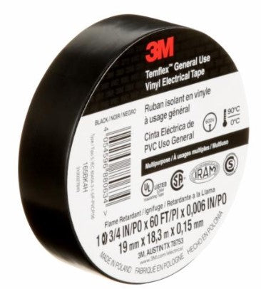 3M™ Temflex™ Vinyl Electrical Tape 165, Black, 3/4 in x 60 ft x .006 in