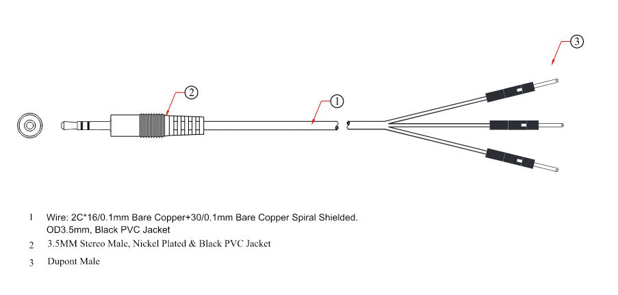• 20 Pack 3.5mm Breakout Stereo Male Cable to 3x Dupont Male