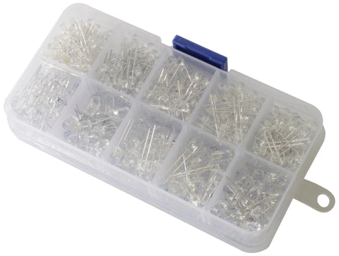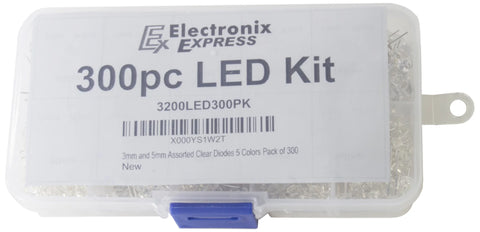 300 Piece Clear Lens LED Assortment, Includes 3mm and 5mm, Colors: White, Red, Blue, Green, Yellow