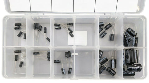 50 Piece Electrolytic Capacitor Assortment Kit with Case, 1 μF to 2,200 μF