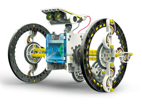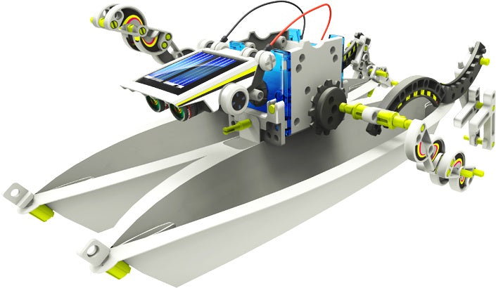 Every hour more solar energy reaches the Earth than humans use in an entire year. Solar panels, or photovoltaic panels, convert the sun's energy into usable electricity. Solar Power is one of the alternative energies used most widely across the globe. Your Solarbot.14 kit contains unique components & parts to construct robots that operate on land and water. Construct 14 different solar powered robots from functional to comical designs. After assembling a model, the user can easily reassemble components into different models. These robots are powered by direct sunlight.