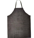 These aprons are made of a chemical resistant PVC-coated fabric which stays flexible. There is reinforcement at the points of strain. Aprons include cloth ties at the neck and waist.