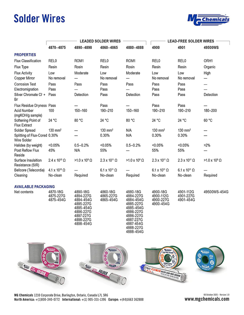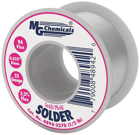 Sn60/Pb40 RA Solder Wire is electronics grade solder wire. The 60/40 rosin core solder uses a classic tin-to-lead alloy ratio complemented by a RA-like flux core. This solder wire meets J-STD-004B, ASTM B 32, and exceeds J-STD-006C specifications. It melts at slightly higher temperatures and over a wider temperature range than 63/37 solder. This results in robust and reliable joints that are highly resistant to whisker formation.