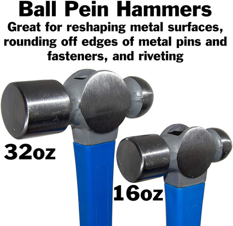 32oz Ball Pein Hammer — 11.5" handle, 1.6" wide head