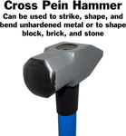 3lb Cross Pein Hammer — 13.25" handle, 1.8" wide head