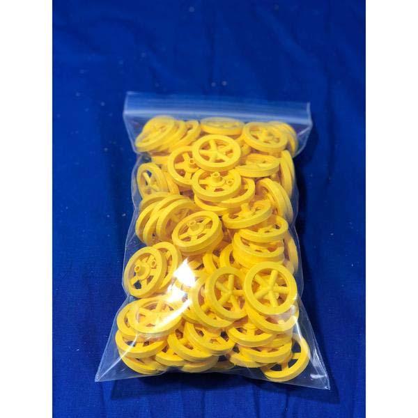 100 Pack yellow front wheels with spokes for Co2 dragster cars