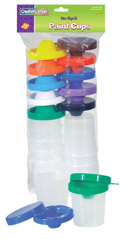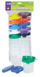 Each 3 1/2 inch non-spill paint pot has inner safety lid, brush rest and top cap.