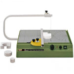 - The holder and wire spool may be shifted and adjusted along the overarm to enable miter cutting.