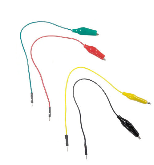 Alligator to Male Pin, 12", Set of 4 - Red, Black, Yellow, Green